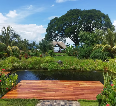 Swimming in The Ojo de Agua a natural spring pool filled with crystal clear water from an underground river that comes from volcano Maderas